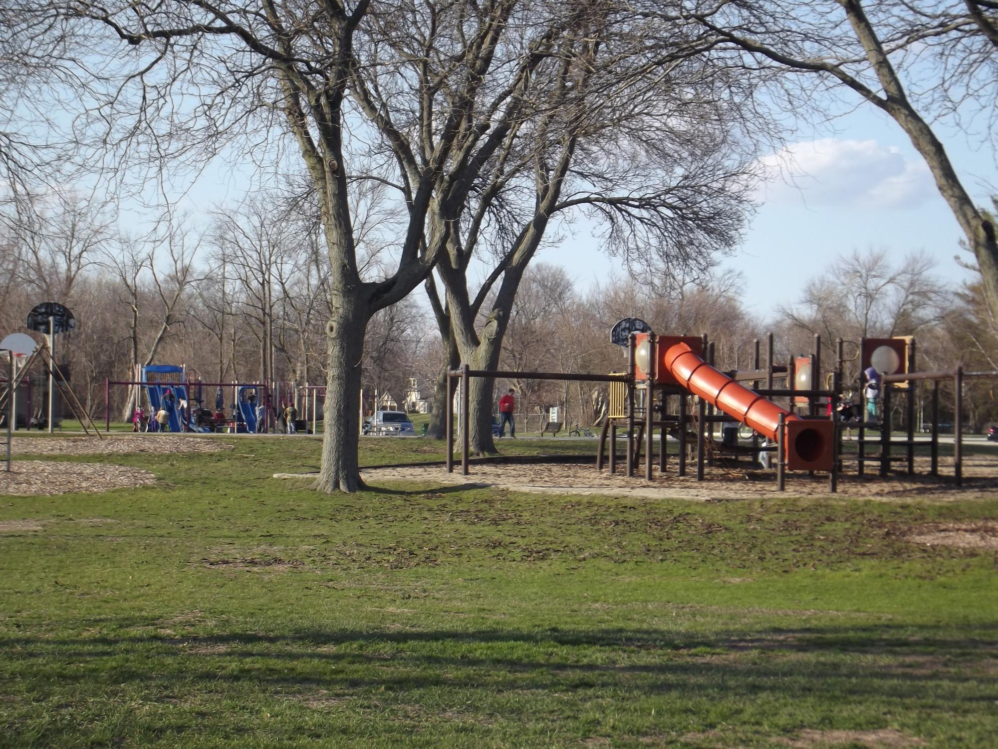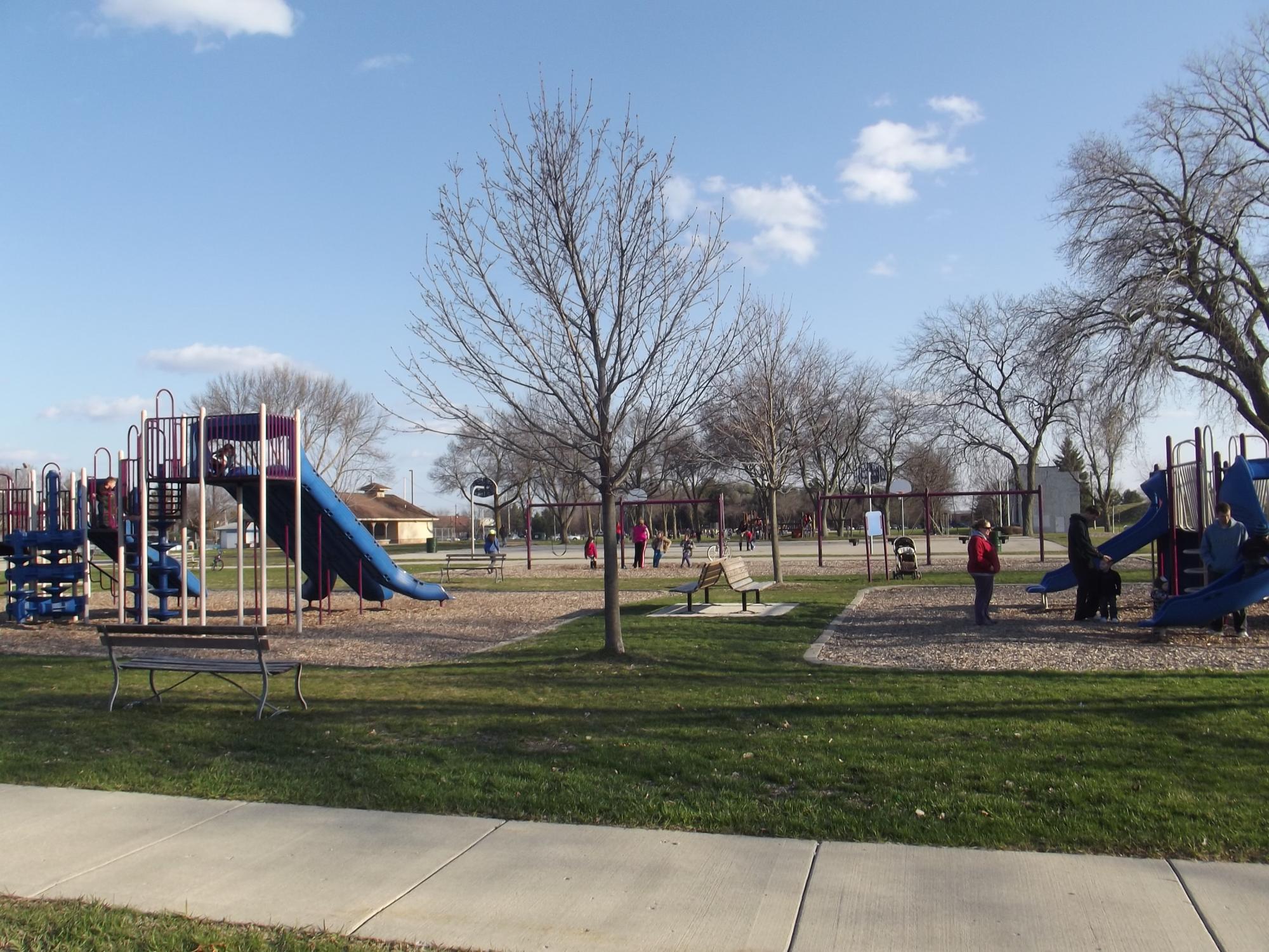 This is a wonderful park!. There are three playgrounds that include swings, slides, monkey bars and more! There is also a sand volleyball pit, baseball/softball fields, tennis courts, a swimming pool, picnic area, and the Elkhorn Band shell. The park is located on Devendorf Street, West Centralia Street and Park Avenue.