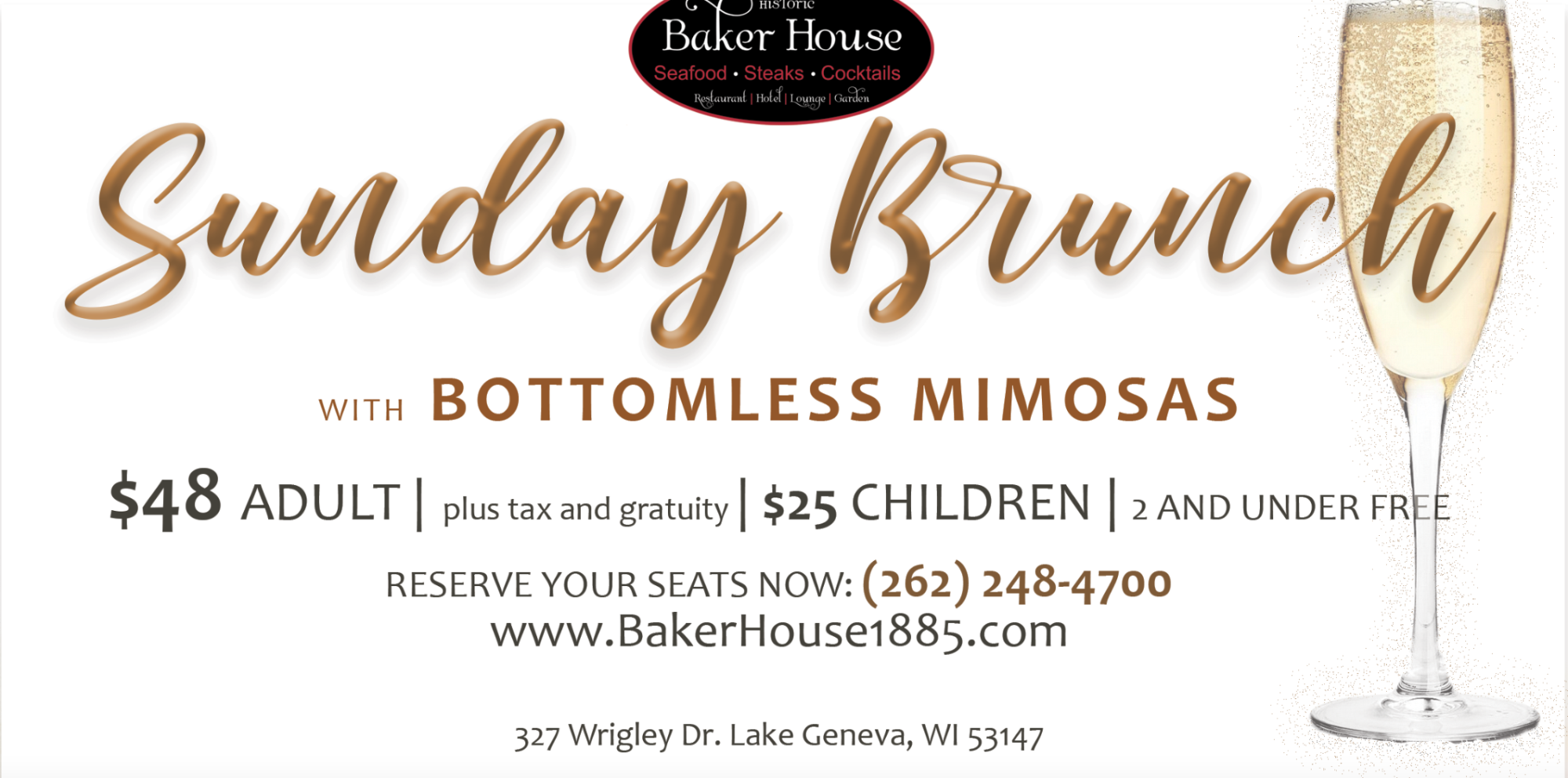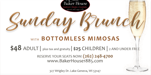 Celebrate Easter Sunday, April 9th, 2023 from 9:30am to 1:00pm at The Baker House with Bottomless Mimosas!
