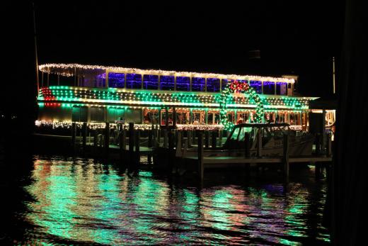 Embark on a magical Christmas boat cruise to Santa’s Hideaway! Along your 40 minute lake tour you will be enchanted by lighted displays* that unfold the story of your journey. From the boat, sneak a peek at the shoreline to see Santa’s Hideaway and Santa himself as he reads the names of the children on board who are on his “Nice List.” A cash bar with adult and children’s beverages and snacks is available.