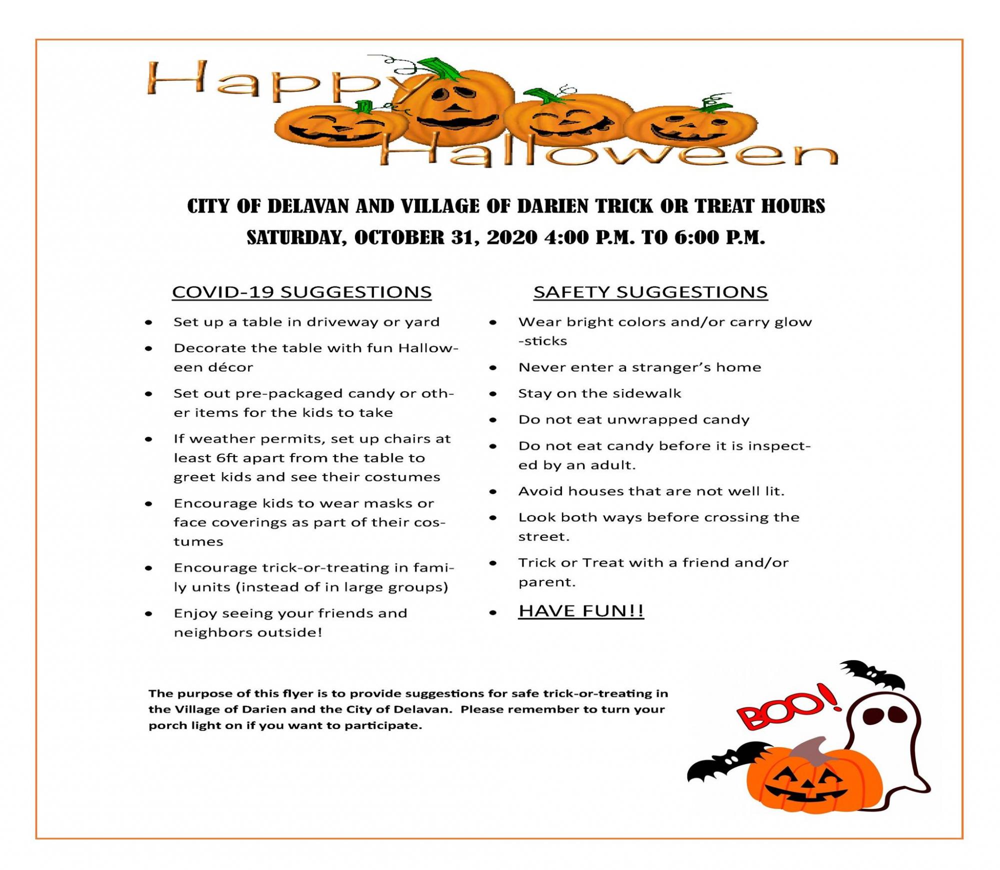 Trick or Treat in Darien will take place on October 31 from 4-6 pm.